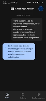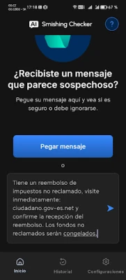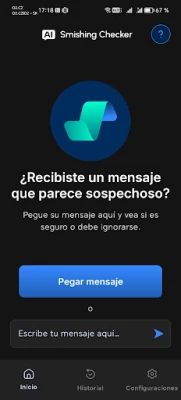 AI Smishing Checker integra una inteligencia artificial de vanguardia con un sistema de seguridad multifactorial para ofrecer un análisis inigualable. El proceso es intuitivo y rápido: simplemente comparte o pega el mensaje que te genere dudas directamente en la aplicación. Nuestro modelo de IA, único en su clase, lo examinará en segundos, determinará su nivel de riesgo, identificará posibles esquemas de phishing o fraude y te proporcionará explicaciones comprensibles y recomendaciones claras para tu tranquilidad.