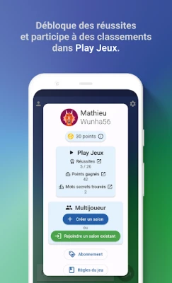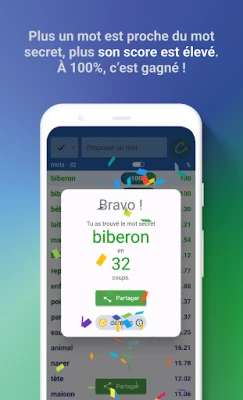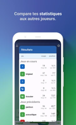 Cada jornada te aguardan múltiples palabras secretas, esperando ser descubiertas en desafíos que varían en dificultad y están disponibles tanto en francés como en inglés. Pon a prueba tu agilidad mental y acumula puntos valiosos al resolver acertijos o al participar activamente. Estos puntos son tu llave para desbloquear pistas que te guiarán en los momentos más complejos. Para los estrategas más audaces, el modo semanal de "puntuaciones ocultas" intensifica la búsqueda, eliminando los indicadores visuales y aumentando la emoción. Consulta tus estadísticas para ver cómo te comparas con otros exploradores del léxico, y celebra tus triunfos compartiendo certificados de victoria con tus amigos, o escala posiciones en los marcadores de Play Juegos.