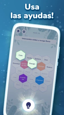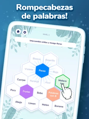 Lo que distingue a Hexa Words es su mecánica excepcionalmente original: cada "flor" hexagonal posee una temática específica, y tu misión es ubicar las palabras en sus categorías correctas. La genialidad radica en que cada vocablo pertenece a dos temas a la vez. Imagina, por ejemplo, identificar la palabra "Puma" no solo dentro de la categoría "Animales", sino también como parte de "Marcas". Solo al descifrar esta intersección dual y encontrar la ubicación perfecta para cada elemento, lograrás iluminar el hexágono y avanzar. Es una aventura constante de descubrimiento, categorización inteligente y resolución de enigmas lógicos que afinará tu ingenio a cada paso.