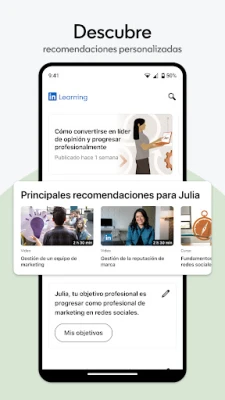 Tu crecimiento es único, y por eso **LinkedIn Learning** te ofrece una ruta de aprendizaje totalmente personalizada. Recibe sugerencias de contenido adaptadas a tus metas específicas y las habilidades que deseas potenciar, asegurando que cada minuto dedicado sea efectivo. Mantente siempre a la vanguardia con la incorporación semanal de nuevos cursos, cubriendo desde inteligencia artificial generativa y ciberseguridad, hasta liderazgo estratégico y desarrollo de software. Aprende cómodamente, ya sea con micro-lecciones diarias para construir un hábito sólido, escuchando audios mientras te desplazas, o sumergiéndote en cursos completos, todo ello disponible tanto en línea como sin conexión.