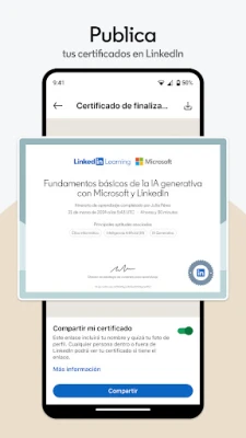 Con **LinkedIn Learning**, valida tu experticia y destaca en tu campo. Obtén certificados profesionales reconocidos que acreditan tus nuevas habilidades y créditos de formación continua, impulsando tu currículum. Integra tus logros directamente en tu perfil de LinkedIn para que tu red profesional y posibles empleadores reconozcan al instante tu compromiso con el desarrollo. Además, el conocimiento no tiene fronteras: elige aprender en tu idioma preferido entre una amplia selección que incluye español, inglés, alemán, francés, japonés, chino y muchos más, facilitando una experiencia de aprendizaje global e inclusiva con **LinkedIn Learning**.