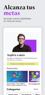 Udemy transforma tu desarrollo profesional. Accede a nuestra plataforma de habilidades impulsada por IA desde tu teléfono para adquirir capacidades clave. Destaca, avanza en tu carrera, adáptate a los cambios y descubre un mundo de oportunidades. Tu crecimiento, a tu alcance.