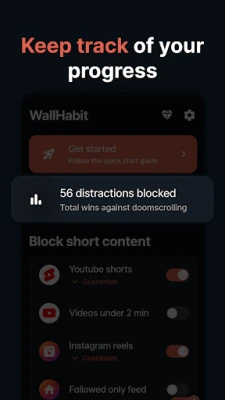 WallHabit es tu bloqueador de distracciones definitivo. Desactiva Shorts y Reels, elimina malos hábitos digitales y detén la procrastinación al instante. Una poderosa herramienta de compromiso para mejorar tu concentración y productividad en segundos.